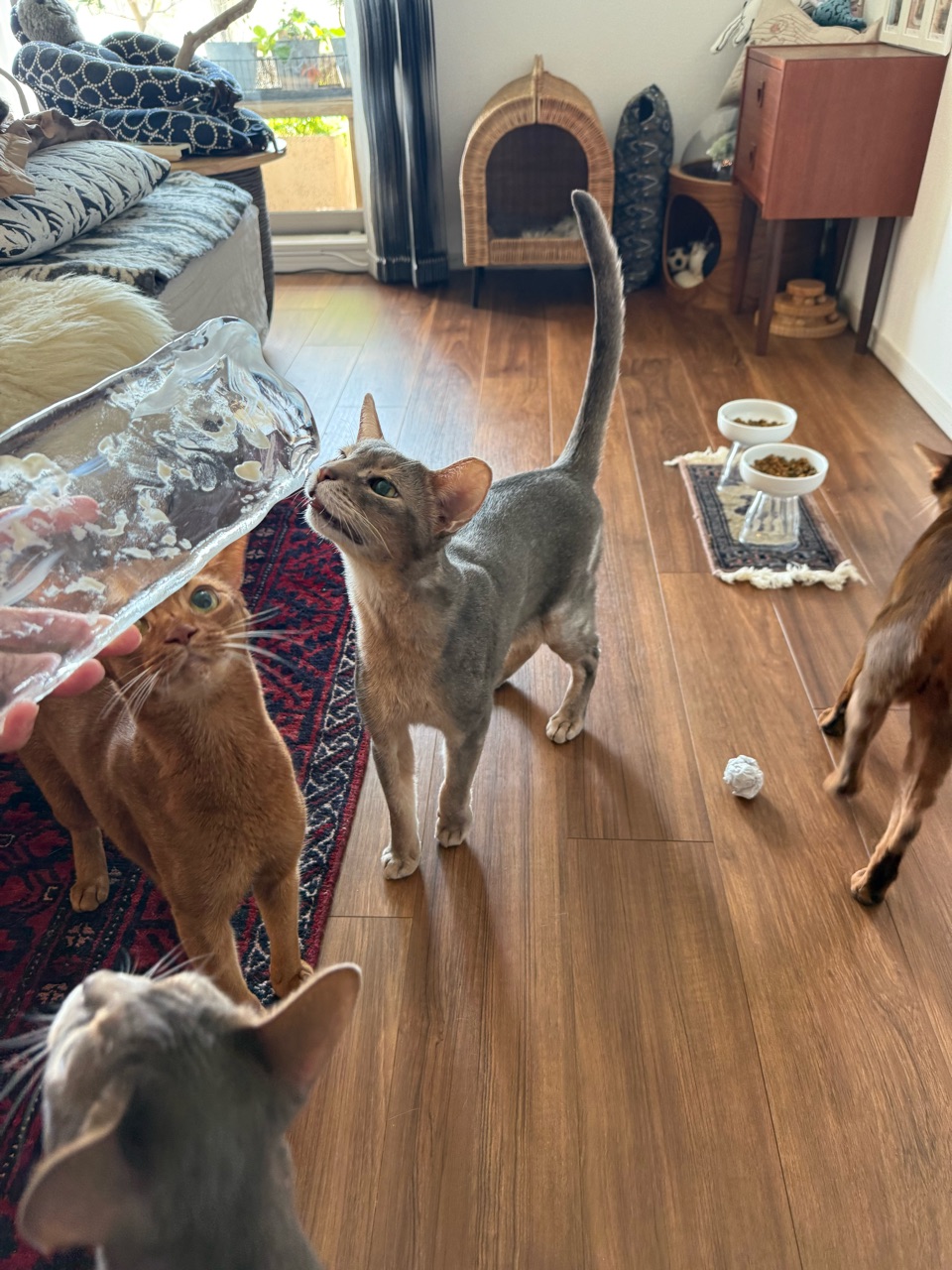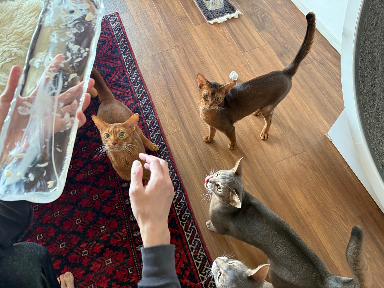 皆のただならぬ雰囲気にりすが逃げちゃって、とりあえず3匹でむさぼる。
