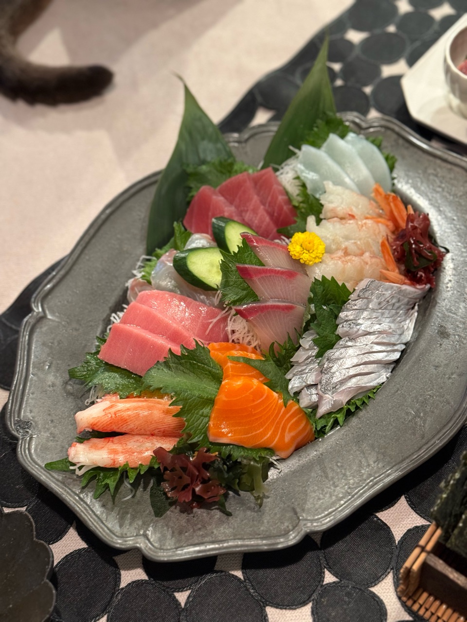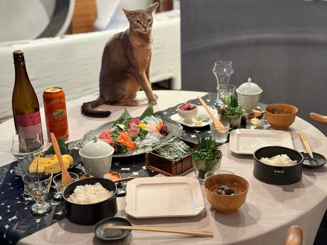 小田原漁港の朝どれ太刀魚のお刺身があったので、買い足していっしょに並べました。