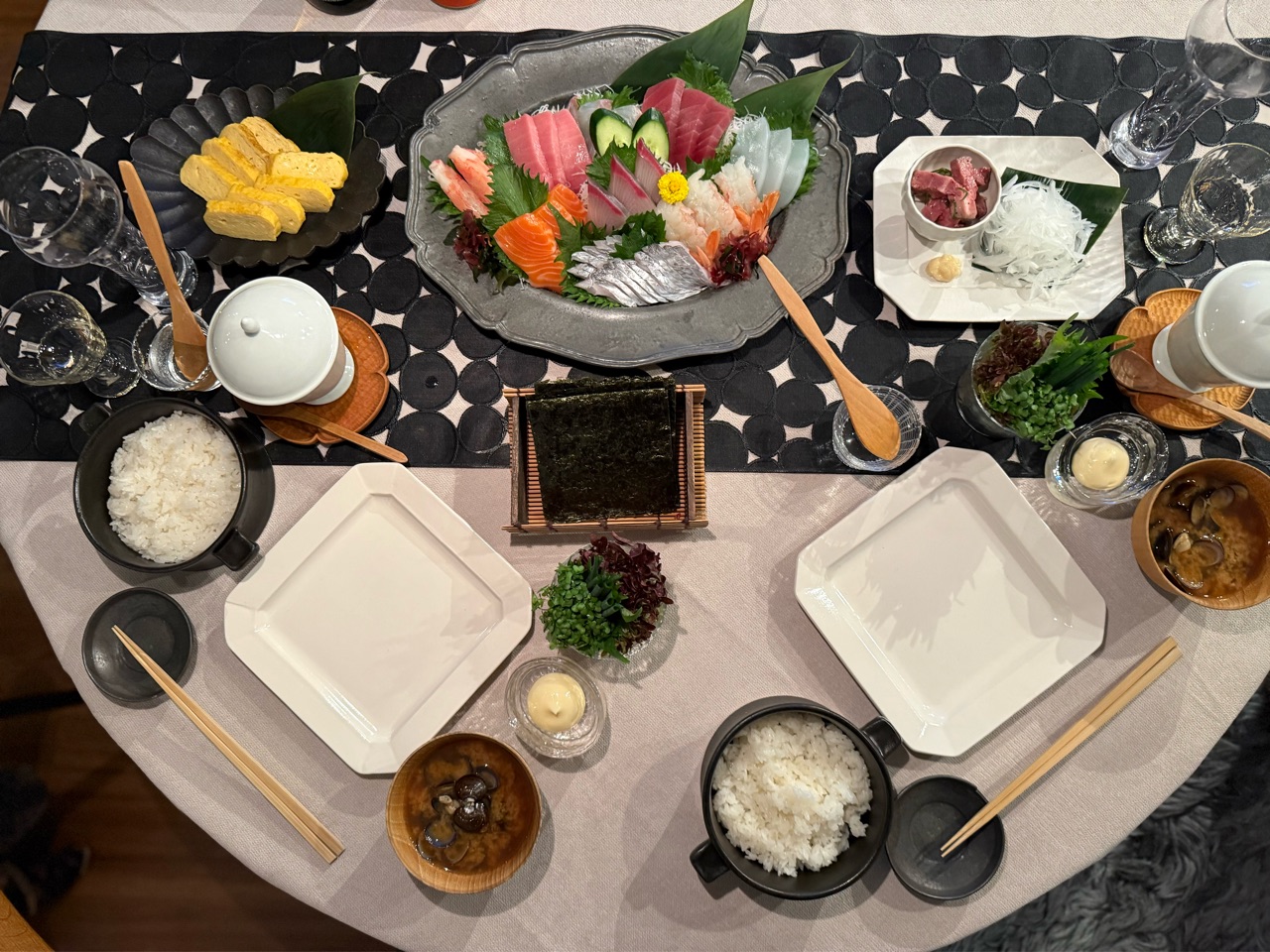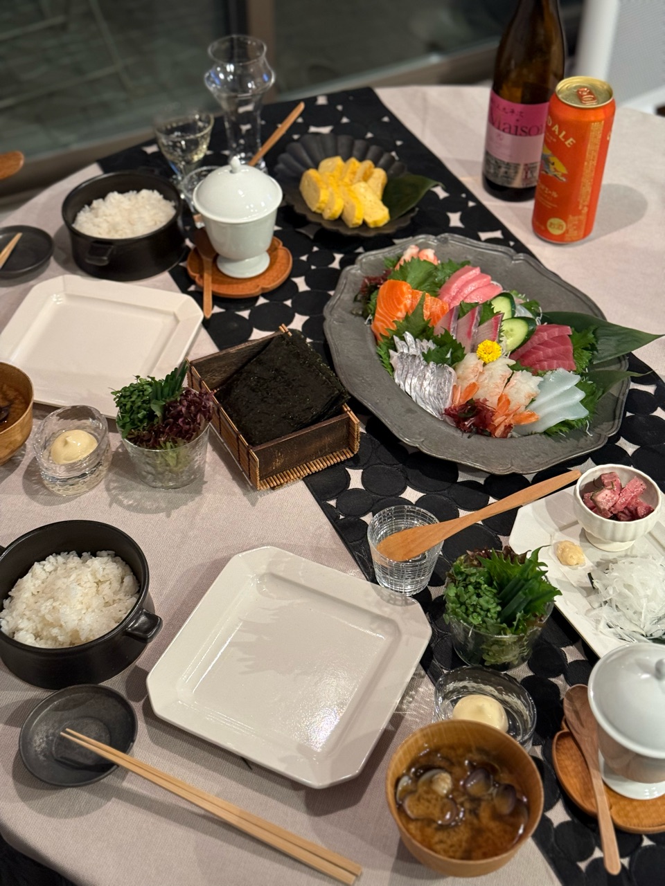 毎年ちゃんとバレンタインのお食事を考えて、感心しちゃいます☺️たくさんの種類の具材の手巻き寿司、とっても美味しそうです😋
