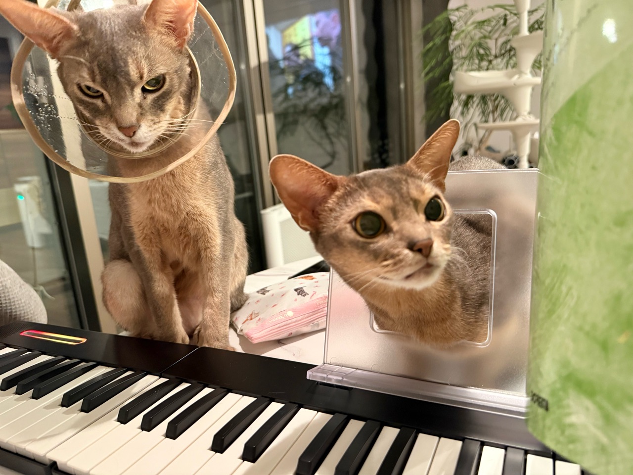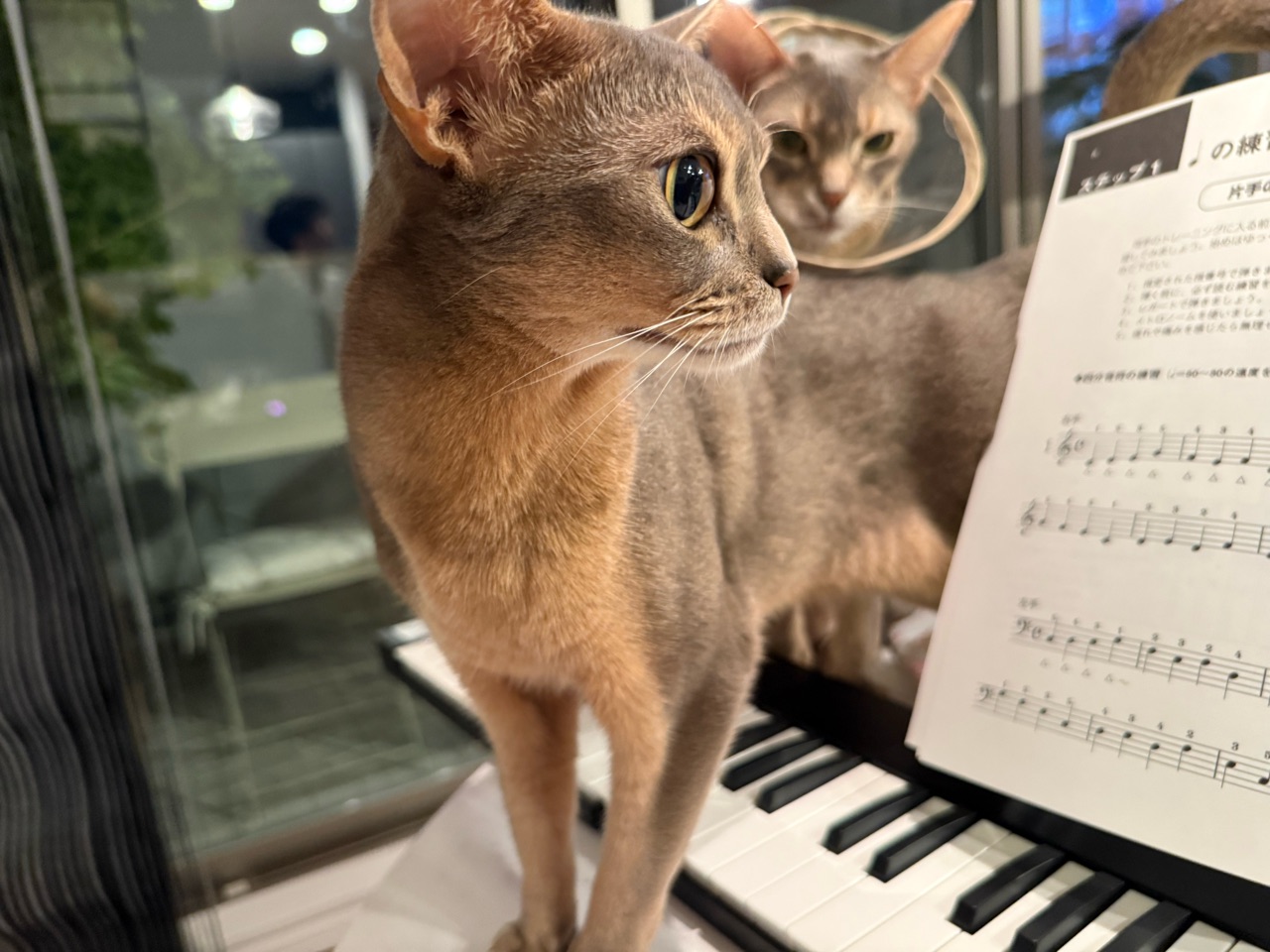 猫たち、ピアノに集まりがち。